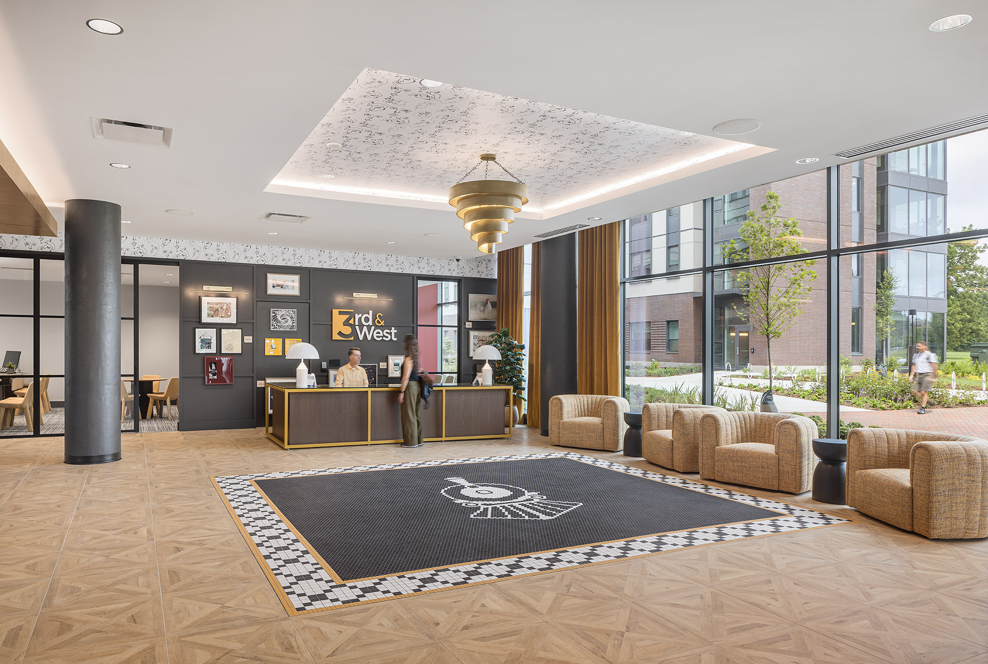 Located at the intersection of Third Street and McCormick Road, 3rd & West is a five-story, 325,000-square-foot community designed to elevate the on-campus residential experience. The 984-bed development features a contemporary aesthetic with a prominent entry plaza for community gatherings, dual courtyards that encourage indoor-outdoor living, and study lounges that anchor its form while serving as a visual landmark within the district.