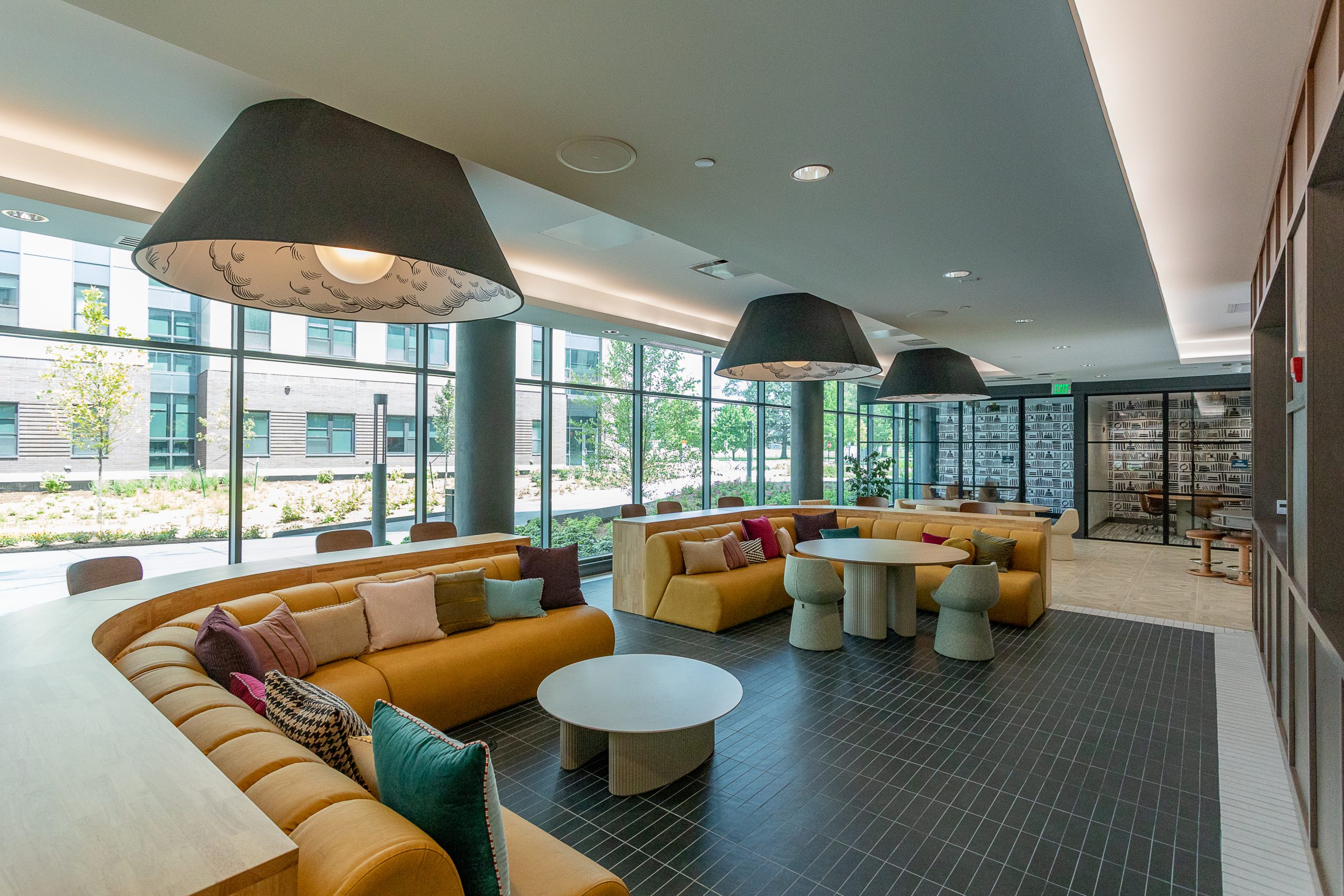 The student community features studio, one-bedroom, two-bedroom, and four-bedroom apartment configurations. Amenities include in-unit washers and dryers, a 24/7 fitness center, indoor and outdoor kitchens, social lounges, study lounges, and private study rooms. The first students will move into the new housing at the start of the fall 2025 semester.