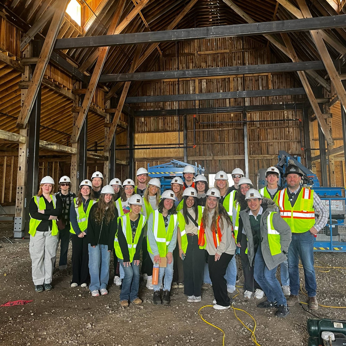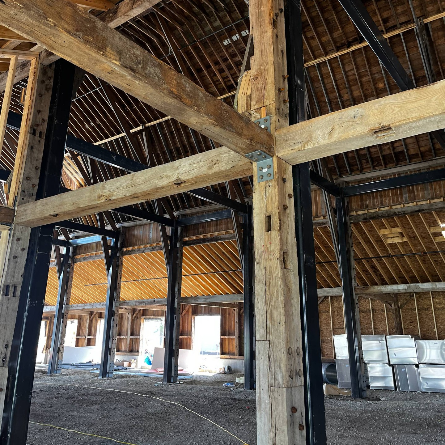 Construction on the core and shell of the barn was ongoing with the historic Beck Barn arriving on site.